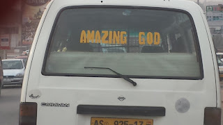 Most all of the taxis and trotros have something written on the back... some even have a scripture reference